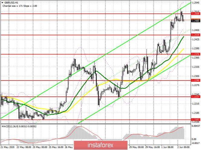 Британский фунт вчера продолжил свой рост против доллара США, так как трейдеры ждут хороших новостей по заключению торговой сделки между Великобританией и ЕС. Очередной раунд переговоров начнется уже сегодня. Если вы посмотрите на 5-ти минутный график, то увидите, как покупатели вчера на отлично справились с повторным тестом и закрепление выше сопротивления 1.2414, от которого еще вчера утром можно и нужно было продавать. Прорыв этого диапазона во второй половине дня привел к мощному бычьему импульсу и обновлению сопротивления 1.2508, около которого сейчас и ведется основная торговля. Однако если мы ознакомимся с COT отчетами (Commitment of Traders) за 26 мая, то увидим, что зафиксирован очень крупный рост коротких позиций, тогда как длинные некоммерческие позиции показали минимальную прибавку, что указывает на постепенный возврат интереса продавцов британского фунта в рынок на текущих максимумах. Перевес остался на стороне продавцов даже несмотря на крупный рост пары с середины мая этого года. В отчете COT указано, что за неделю произошел рост коротких некоммерческих позиции с уровня 54 799 до 61 449, в то время как длинные некоммерческие позиции также увеличились с уровня 35 810, до уровня 39 192. В результате этого некоммерческая нетто-позиция стала еще больше отрицательной и оказалась на уровне –22 257, против –18 989, что пока указывает на сохранение в GBP/USD среднесрочного медвежьего тренда. Что касается внутридневной стратегии, то быкам необходимо защищать поддержку 1.2439, возврат к которой может сегодня очень быстро произойти в первой половине дня. На этом же уровне просматриваются и средние скользящие, от которых пара может отскочить вверх. Формирование ложного пробоя в этом диапазоне будет сигналом на открытие длинных позиций с целью повторного роста к сопротивлению 1.2508. Немаловажной задачей быков для сохранения восходящему импульса будет прорыв и закрепление выше этого диапазона, с тестом его уже сверху вниз на объеме, что приведет образованию нового сигнала на покупку в расчете на обновление максимумов 1.2557 и 1.2597, где рекомендую фиксировать прибыль. Если же давление на фунт сохранится, а крупного движения вверх от уровня 1.2439 образовано не будет, лучше всего повременить с длинными позициями и покупать на отскок от минимумов 1.2376 и 1.2290 в расчете на коррекцию в 35-40 пунктов внутри дня.