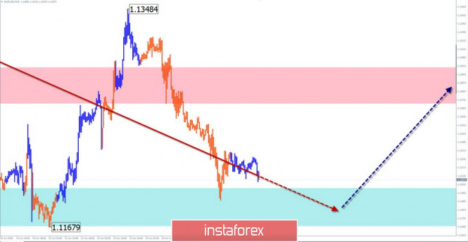 Сегодня ожидается завершение нисходящего настроя движение пары, формирование разворота и начало ценового подъема. При смене курса возможен кратковременный прокол нижней границы зоны поддержки. Активная фаза вероятна во второй половине дня.
