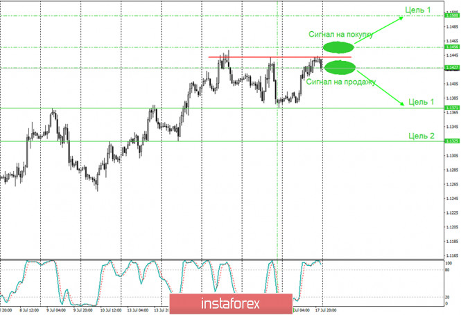 2) Так как пара продолжает торговаться ниже уровня 1,1442, то продажи сейчас более предпочтительны с целями 1,1371 и 1,1325. Тем более, у нас имеется сигнал к продажам в виде отскока от 1,1442. В понедельник, не стоит забывать, что станут известны окончательные результаты заседания Евросоюза, поэтому, если будут какие-то неожиданности, их следует учитывать при открытии любых сделок.