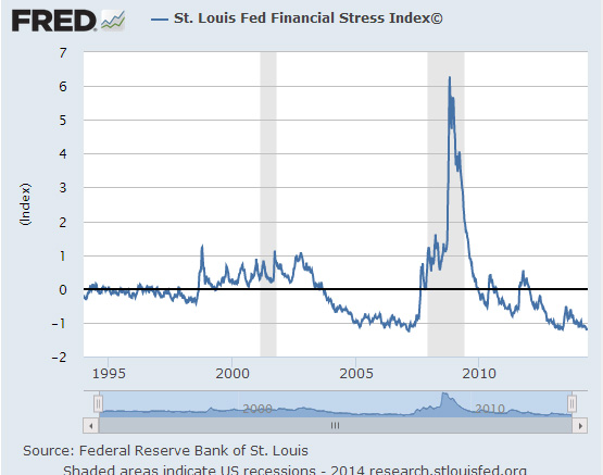 Индекс финансового стресса ФРБ Сент-Луиса упал ниже семимесячного минимума. Хорошая и плохая новость одновременно.