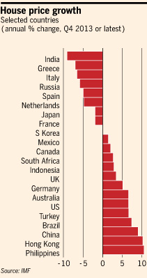 «Это касается, например, Австралии, Бельгии, Канады, Норвегии и Швеции», - заявил он. На фоне глобальной рецессии центральные банкиры сократили процентные ставки до рекордных минимумов, толкая цены до уровней, с которыми МВФ связывает существенные риски для экономик от Гонконга до Израиля. Новый глобальный индекс цен на жилье МВФ демонстрирует резкий рост до 3.1% по сравнению с прошлым годом. Цены на жилье растут быстрее на развивающихся рынках, например, на Филиппинах они выросли на 10% по сравнению с прошлым годом, на 9% в Китае и на 7% в Бразилии.