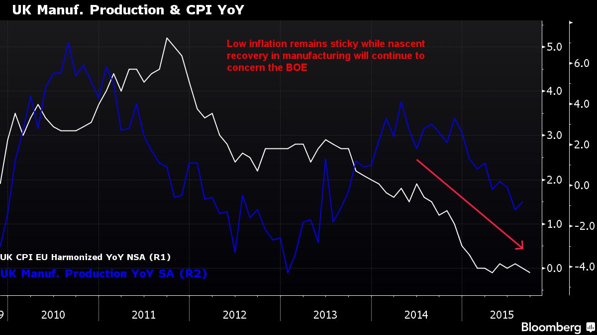 Пока общая британская инфляция не начнет демонстрировать существенный рост, любой прогноз Банка Англии на более скорое увеличение цен в этот четверг будет недостаточен для того, чтобы толкнуть рыночные оценки к повышению ставки, пишет стратег Bloomberg Ричард Джонс.
