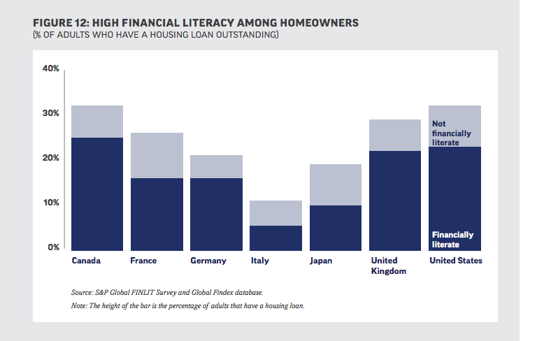 В большинстве развивающихся экономик финансовую грамотность в основном демонстрируют граждане от 15 до 35 лет. В большинстве развитых стран это возрастная группа 36-50. Люди не принимают необходимость диверсификации рисков. Лишь 35% респондентов по всему миру правильно ответили на 3 вопрос. Многие владельцы домов не могут посчитать процентную ставку по своим платежам. Около трети взрослых в США платят ипотеку; три из 10 не понимают, как считаются их ежемесячная выплата по долгу.