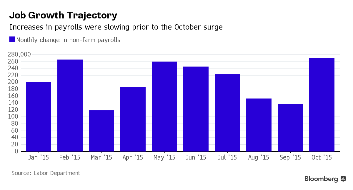 The Jobs Report Probably Won't Change the Fed's Mind on Liftoff, Bloomberg, Dec 3