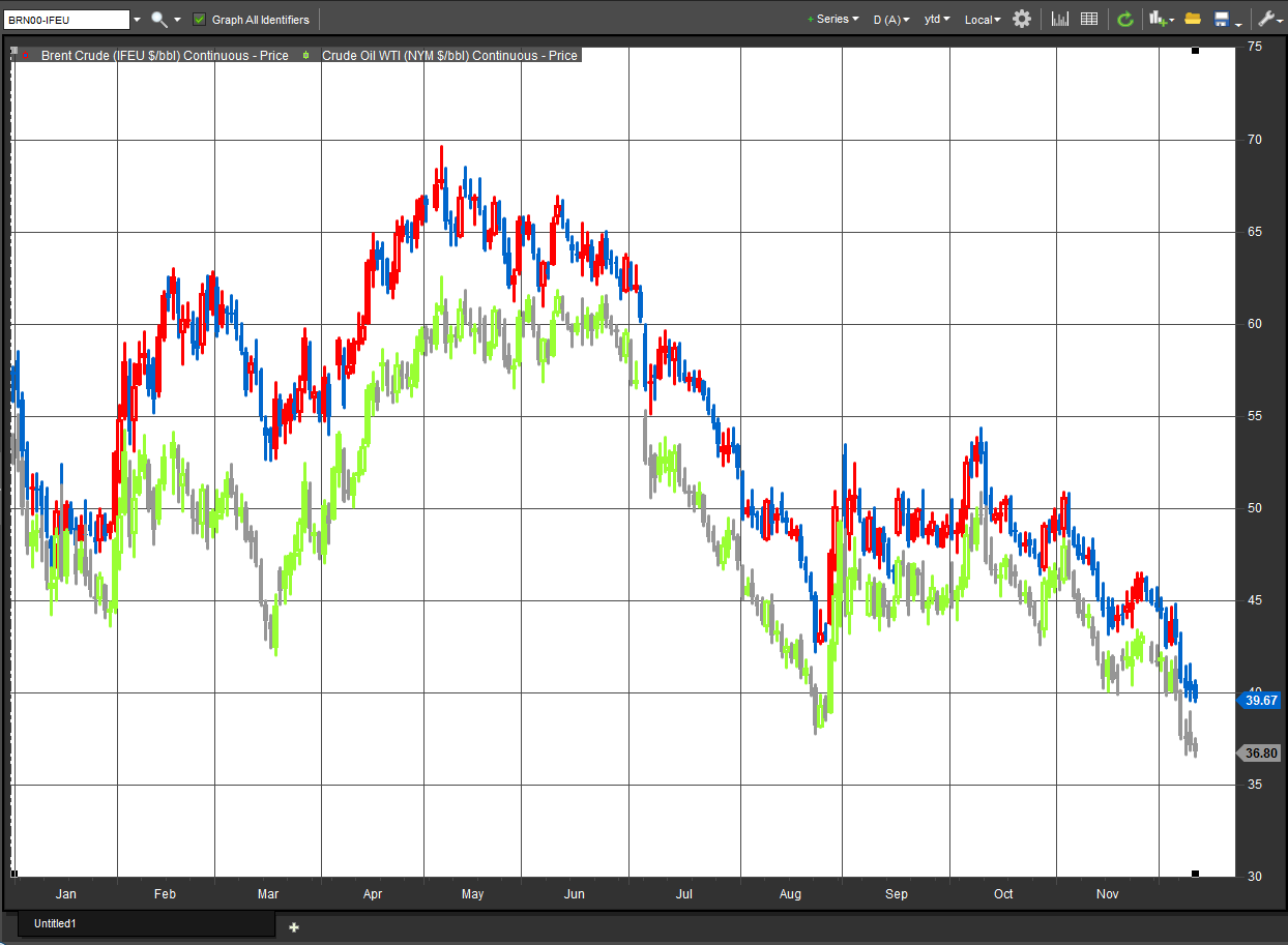 Вне всяких сомнений ОПЕК сыграла огромную роль в обвале цен на нефть. Стоимость барреля падала каждый день после заседания картеля в пятницу, на котором было принято решение выкачивать нефть в текущем объеме, что легализовало добычу примерно 31.5 миллиона баррелей в день, тогда как это и раньше было выше установленных целевых 30 миллионов в день.
