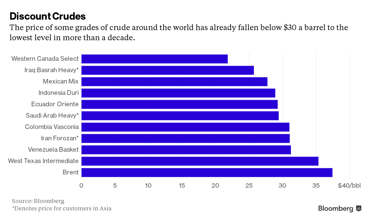Never Mind $35, The World's Cheapest Oil Is Already Close to $20, Bloomberg, Dec 14