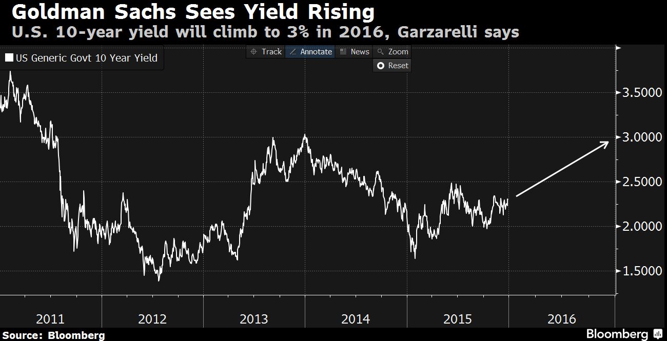 По мнению крупнейших инвесторов, доходность облигаций, вероятно, окажется посредственной в следующем году, как это было и в уходящем. JPMorgan Chase & Co., Fidelity Investments, Pacific Investment Management Co. и Goldman Sachs Group Inc. предостерегают от чрезмерного оптимизма. Goldman Sachs прогнозирует рост доходности эталонных американских десятилеток до 3% к концу 2016 года с 2.29% в четверг.