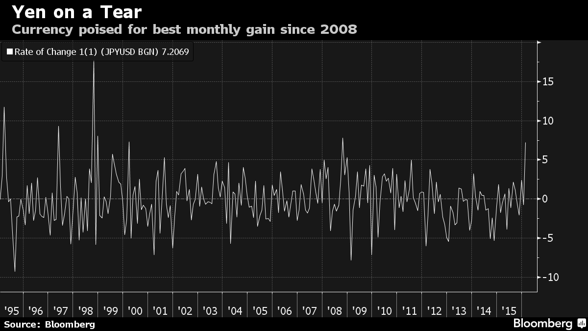 "Раньше требовались месяцы или недели для корректировки цен, сейчас это происходит очень быстро, - заявил Киллен, начавший работать у крупнейшего австралийского кредитора в 2001 году. - Такая динамика создает стресс на рынке, и независимо от рисков, динамика может очень быстро развернуться". Можно взять иену. Валюта прошла наиболее существенное снижение за год 29 января после того, как председатель Банка Японии Харухико Курода неожиданно ввел отрицательные процентные ставки. С того момента валюта выросла более чем на 6%, что стало наиболее резким ростом с 2008 года. Евро проходил еженедельный рост в размере 3% и более в течение трех раз с начала 2015 года, падала валюта пять раз. В течение предыдущих трех лет сопоставимых колебаний не было.