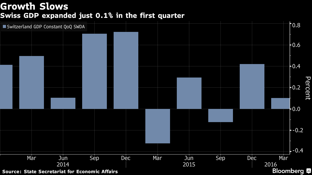 Swiss Growth Unexpectedly Slows on Weak Government Demand, Bloomberg, Jun 1