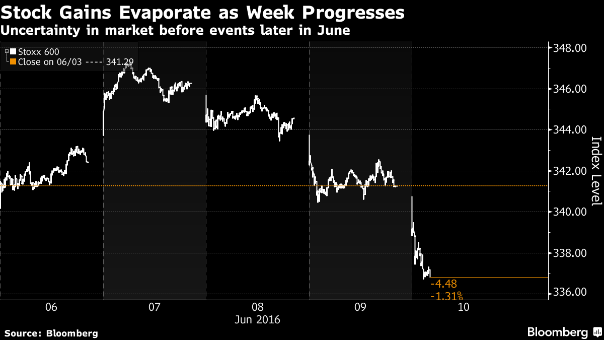 European Stocks Decline for Third Day, Deepening Weekly Retreat, Bloomberg, Jun 10