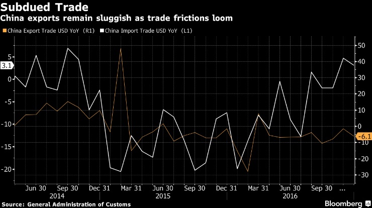 “Внешний спрос остается слабым, - заявил Вен Бин, аналитик China Minsheng Banking Corp. в Пекине. - Перспективы для экспорта в этом году не кажутся многообещающими, а также происходит усиление протекционизма и неопределенности вокруг политики Трампа”. Снижение юаня, который потерял 6.5% против доллара в прошлом году, а также снижение на 6% против корзины валют, смягчило последствия слабого глобального спроса, однако же никак не помогло восстановлению продаж. Крупнейший мировой экспортер сталкивается с новыми проблемами и все более сильной неопределенностью.