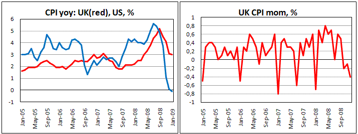 Индекс потребительских цен в Великобритании незначительно снизился в январе в годовом выражении до 3,1% с 3,0%. За месяц стоимость потребительских товаров опустилась на 0,7%, сообщил сегодня Office for National Statistics. Экономисты предполагали более серьезное снижение инфляционного давления: до 2,6% г/г, и -1,0% м/м. Наибольшее падение зафикисировано в подгруппе одежды и обуви. По итогам месяца цены здесь упали на 4,7%, а по итогам 12 – на 10,0%. Причиной того, что инфляция в Великобритании находится на гораздо более высоком уровне по сравнению с показателями США или зоны евро, кроется в ослаблении фунта. Снижение его торгово-взвешенного курса до минимального уровня за все время после коллапса Бреттон-Вудской системы отражается в повышении цен на импорт, которые продавцы вынуждены перекладывать на плечи покупателей, не считаясь с падением потребительского спроса. В то же время столь неожиданно высокие показатели инфляции могут наложить определенные ограничения на планы Банка Англии, который в своем отчете по инфляции прогнозировал падение CPI существенно ниже 2,0% в ближайшие месяцы. Этот отчет поддержал британскую валюту, хотя можно ожидать, что укрепление gbp/usd может быть недолгим. Слишком много негатива скоплено вокруг банковского сектора, а это важная составляющая рынка кредитования, зачастую определяющая тренд британского фунта.