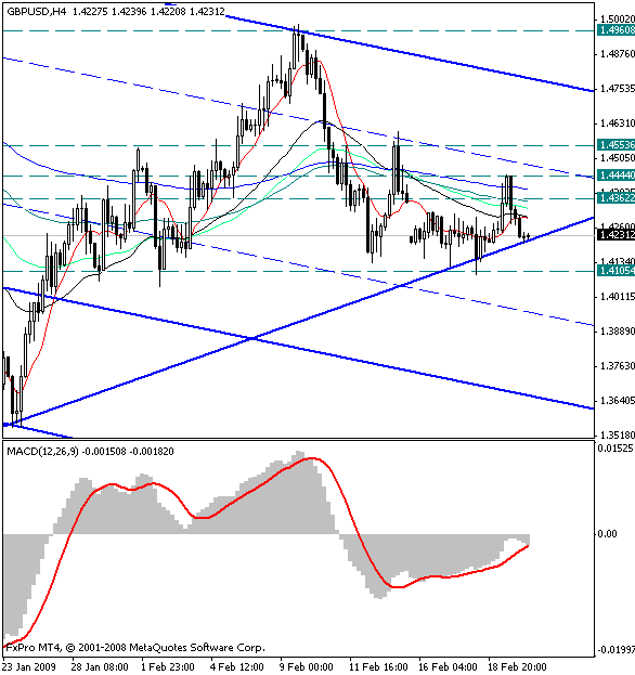 В начале европейской сессии четверга быкам все таки удалось пробить сильный уровень сопротивления 1.4300/20, таким образом курс валюты вышел из ценового диапазона 1.4100-1.4320 в котором находился больше трех дней, после чего можно было наблюдать значительное усиление бычьих настроений по данной валютной паре.Всего за несколько часов котировки достигли уровня 1.4400, протестировав который и не пробив с первого раза фунт немного откатился к уровню 1.4350, но уже во второй половине дня покупки возобновились и фунт достиг уровня 1.4440/50, где нашел очень сильное сопротивление со стороны медведей. С началом торгов в Америке начались не менее агрессивные продажи британской валюты и к концу торгового дня котировки достигли уровня 1.4300.