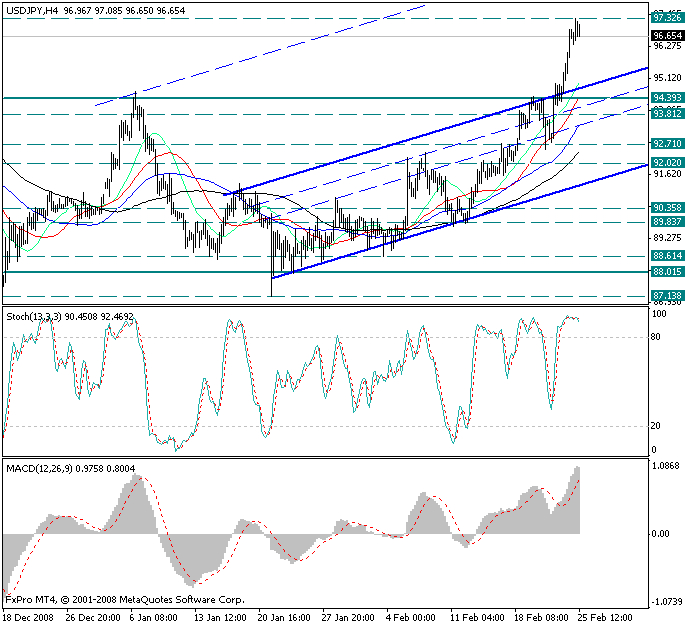 Как и предполагалось в прошлом обзоре, пробой уровня сопротивления 95.40/50 значительно усилил бычьи настроения и открыл путь к уровням 96.00/20 и 97.50.В данной ситуации сигналы от технических индикаторов полностью совпадают с фундаментальными данными, которые не в пользу японской йены. В частности из-за угрозы глубокой дефляции инвесторы сокращают покупки Японских активов. Для Японии проблема дефляции не нова, а возможное единственный путь для ее преодоления - снижение Банком Японии курса национальной валюты.