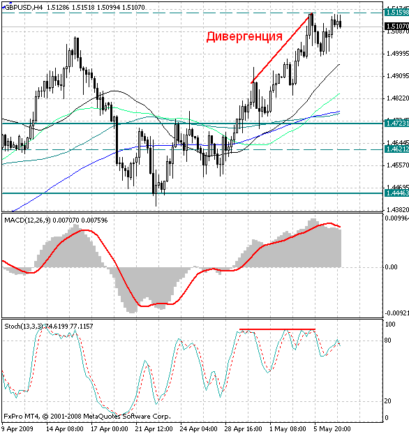 В начале европейской сессии среды медведям так и не удалось пробить уровень поддержки 1.5000, после чего британский фунт начал постепенно укрепляться по отношению к американскому доллару. Поддержку стерлингу оказали следующие новости: - уверенность потребителей выросла сразу на 9 пунктов до 50, при этом индекс ожиданий взлетел сразу до 70 с 57. - индекс PMI в сфере услуг указал на существенное сокращение темпов спада, поскольку показатель в апреле находился на отметке в 48,7.