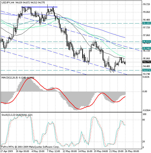 Поскольку наблюдается противоречие в сигналах которые формируют индикаторы, то наиболее правильным решением будет дождаться выхода курса валюты из диапазона 94.50-95.20, что прояснит ситуацию и поможет лучше спрогнозировать дальнейшее развитие событий.