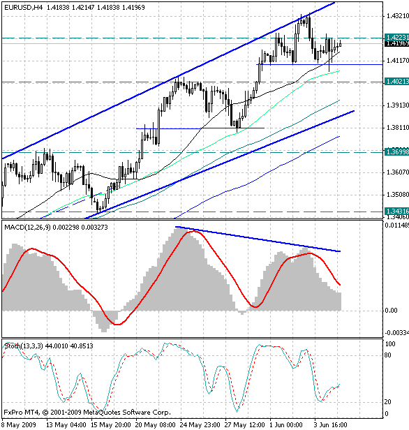 Если "трезво" посмотреть на все эти "страсти", то можно посмотреть, что на 4х часовом графике курс валюты продолжает консолидироваться в рамках ценового диапазона 1.4100-1.4230, что в свою очередь указывает на неопределенность участников рынка в краткосрочной перспективе.
