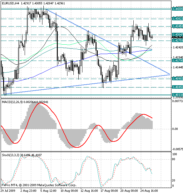 FxPRO Евро/доллар. Консолидация в диапазоне 1.4250-1.4350 продолжается