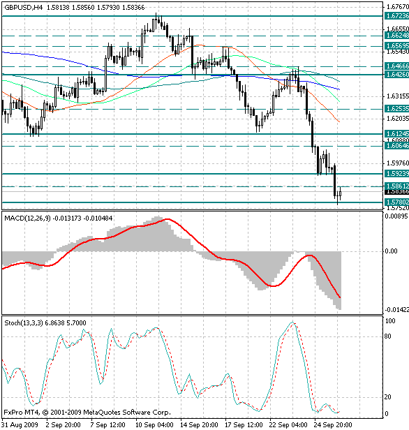 Консолидация в диапазоне 1.5920-1.6030 (которая продолжалась всю прошлую пятницу) завершилась сегодня в начале азиатской сессии пробоем его нижней границы, что привело к усилению медвежьих настроений и снижению котировок к уровню 1.5780. Уже возле уровня 1.5780 нисходящее движение замедлилось и фунт начал постепенно отыгрывать ранее понесенные потери...