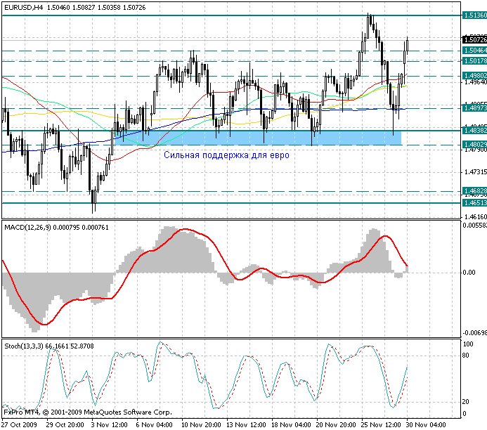 Начнем с того, что наш прошлый прогноз подтвердился - в начале европейской сессии прошлой пятницы курс валюты смог пробить уровень поддержки 1.4915/00, что привело к усилению коррекции и всего через несколько часов ранее намеченная цель 1.4840 была отработана. На 4х часовом графике, хорошо видно, что на уровне 1.4840/00 единая европейская валюта неоднократно получала очень сильную поддержку, что произошло и в этот раз. Отбившись от данного уровня курс валюты начал расти и продолжает это делать до сих пор...