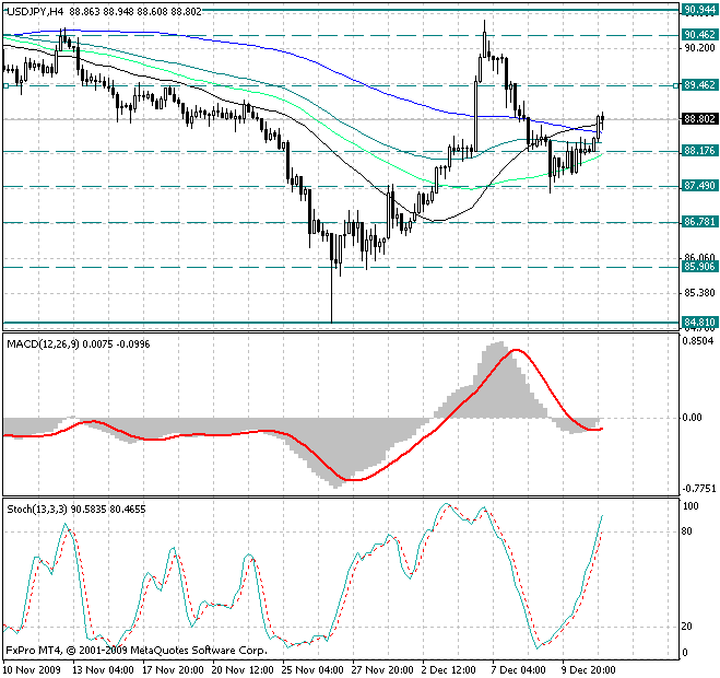 Курс валюты закрепился выше скользящих средних с периодами 34, 144, 89 и 55, которые теперь являются ближайшими сильными уровнями поддержки 88.80, 88.50, 88.30 и 88.10.