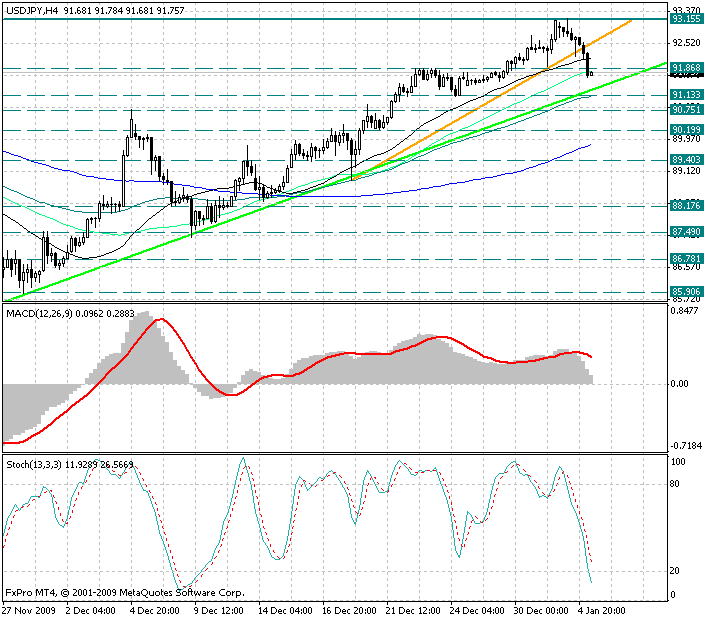 Курс валюты закрепился ниже скользящих средних с периодами 34 и 55 (теперь это уровни сопротивления 91.80 и 92.00/10), но по прежнему расположен выше скользящих средних с периодами 89 и 144 (уровни поддержки 91.15 и 89.90/80.