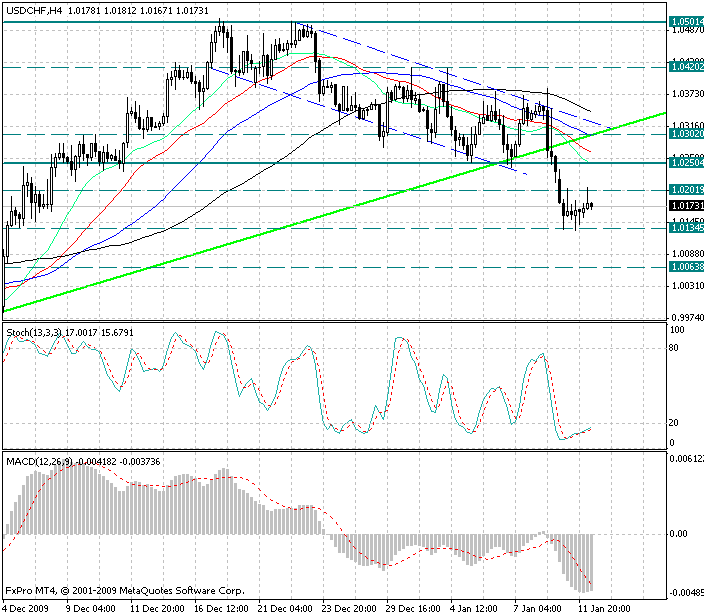 FxPRO Второй день доллар/франк консолидируется в диапазоне 1.0130-1.0200