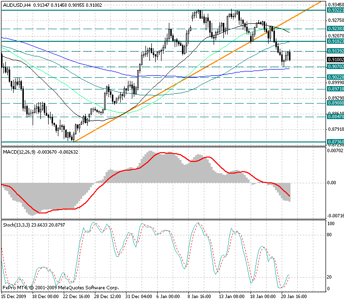 Обратив внимание на 4х часовой график, можно заметить, что австралийский доллар второй день консолидируется в диапазоне 0.9070-0.9140. Это в свою очередь сигнал о том, что на рынке форекс по данной валютной паре сохраняется краткосрочная неопределенность...