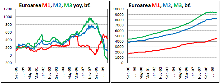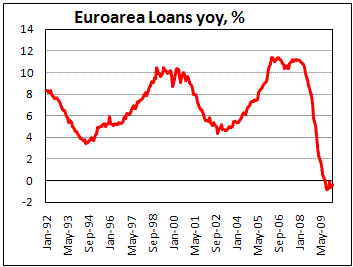 Денежный агрегат M3 в еврозоне сократился в феврале на 0,4% по сравнению с февралем прошлого года. Сокращение превысило ожидания, позволяя говорить о необходимости сохранения мягкой монетарной политики Европейским Центробанком. Отрицательный темп наблюдался и в конце года, но тогда спад достигал 0,2-0,3%. Вообще интересно сравнивать, как двигаются различные индикаторы. Наиболее прямое воздействие ЕЦБ имеет на M1, а вот его производные, зависящие от активности банков и потребителей, стагнируют со второй половины 2008 года, то есть с начала активной фазы кредитного кризиса. Частное кредитование с сентября прошлого сокращается к уровням прошлого года. На февраль падение составляло 0,4%. До этого в период с 2006-го по середину 2008-го годовой темп прироста составлял примерно 11%, а в ранние 2000-е, при весьма скромных темпах прироста ВВП, этот показатель замедлялся лишь до +5%. Выходит, что потребители всерьез принялись за снижение собственной долговой нагрузки, что может в конечном итоге оказать давление на темпы восстановления в регионе через падение потребительской активности. Отчасти это видно и в статистике, полученной сегодня из Франции и Италии. Во Франции потребительские расходы в январе снизились на 1,2%, а в Италии продажи упали на 0,4%. Экономисты, опрошенные новостными агентствами, ожидали в среднем увидеть положительные значения.