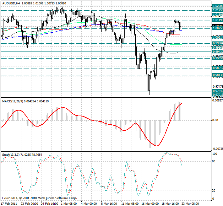 Обратив внимание на 4х часовой график, можно заметить, что на торгах во вторник бычьи настроения утихли возле уровня сопротивления 1.0120/30, после чего началась фиксация прибыли быками, которая продолжается до сих пор...