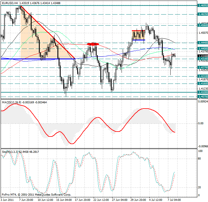 Курс валюты по-прежнему расположен ниже скользящих средних с периодами 89, 144, 55 и 34, которые являются рядом уровней сопротивления 1.4360, 1.4390, 1.4410 и 1.4440.