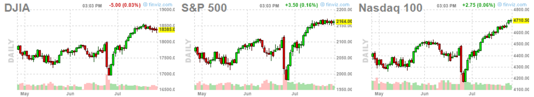 Рис. 5 Индекс DJIA, S&P 500, и Nasdaq 100 (источник: finviz.com)