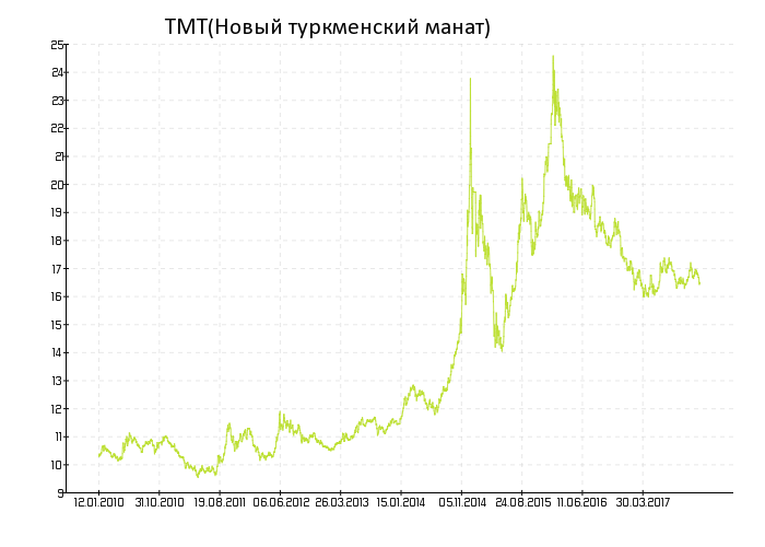 Курс TMT(Новый туркменский манат) на сегодня - 17,7345